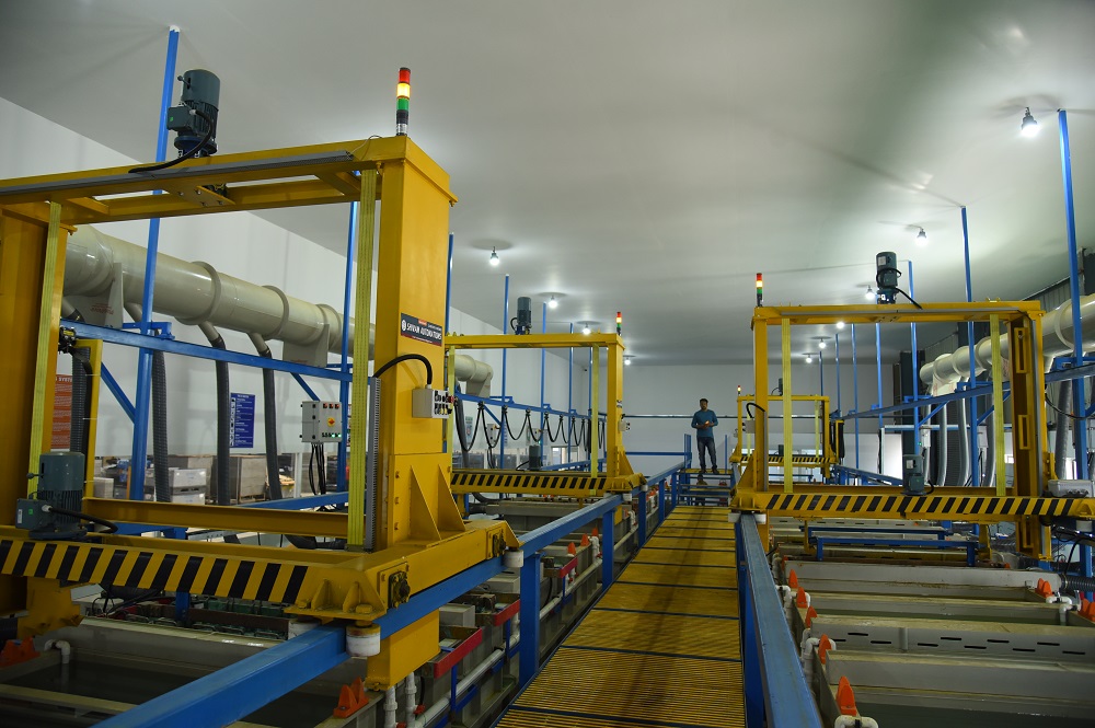 Electroplating is a surface finishing process based on the concept of electrolysis. This process involves depositing a thin layer of metal on the surface of the workpiece. Here, the Anode, which is the metal to be deposited, and Cathode, which is the work piece, are both placed in a solution called the electrolyte and a DC current is passed through it. An Electroplating Plant essentially consist of a series of process tanks based on the process envisaged with a transfer system which enables the component to be electroplated by immersion in each tank for appropriate time and in the sequence necessary to produce the required finish. (Pre-treatment, Plating, Post- Treatment). Assisted by an experienced team of highly trained professionals providing Sound Engineering, Quality Workmanship and Dedication to Customer Satisfaction has led to SHIVAM AUTOMATIONS formidable reputation.