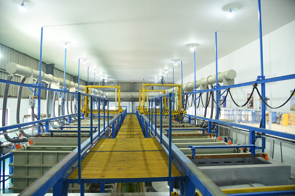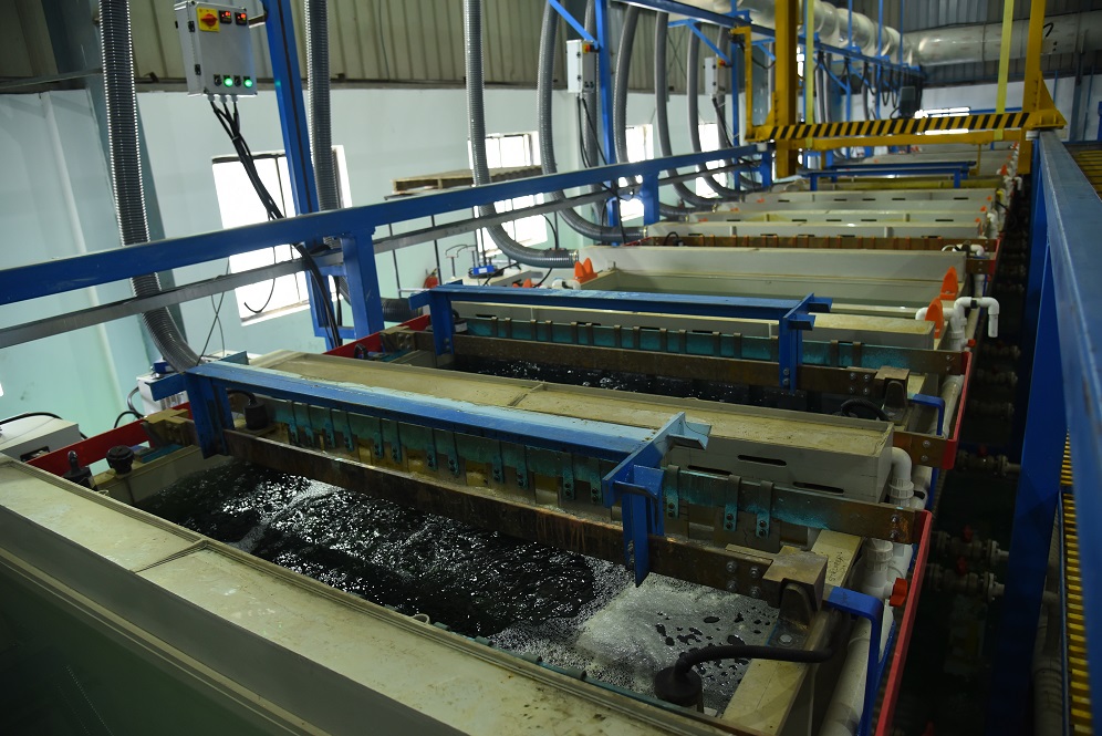 Predominantly Electroplating application can be bifurcated into Industrial and Aesthetic applications. Under Industrial applications, electroplating of metal is beneficial for: protection against corrosion, conductivity, reducing friction, increasing Hardness and wear resistance, etc. Under Aesthetic application, various metals or combination of metals can be employed to provide a desired appearance to the finished product as per industrial norms. Growel’s Turnkey Electroplating Solutions provide a complete system consisting of Tanks, Automated Transport Wagons for material handling and all the connected auxiliary equipments such as exhaust fan, scrubber, rectifiers, chillers, filters, air agitation units, control panels etc.